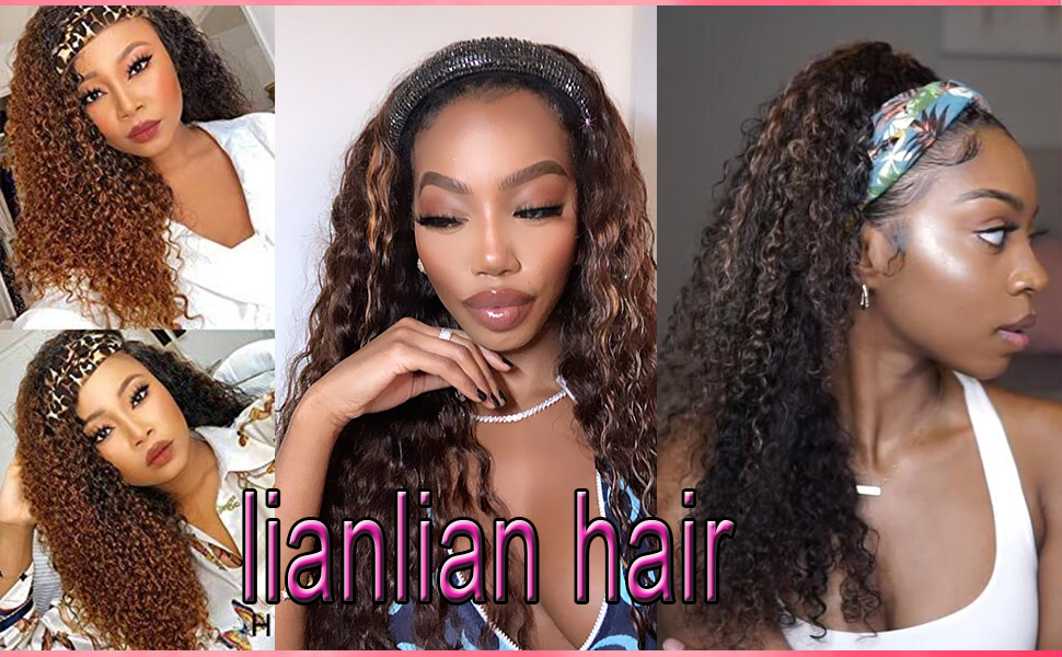 Amazon Com Highlights Ombre Deep Wave Headband Wigs 14inch Human Hair Headband Wigs For Women P4 27 Piano Color None Lace Front Wigs Natural Curly With Headband 12a Brazilian Virgin Human Hair 220